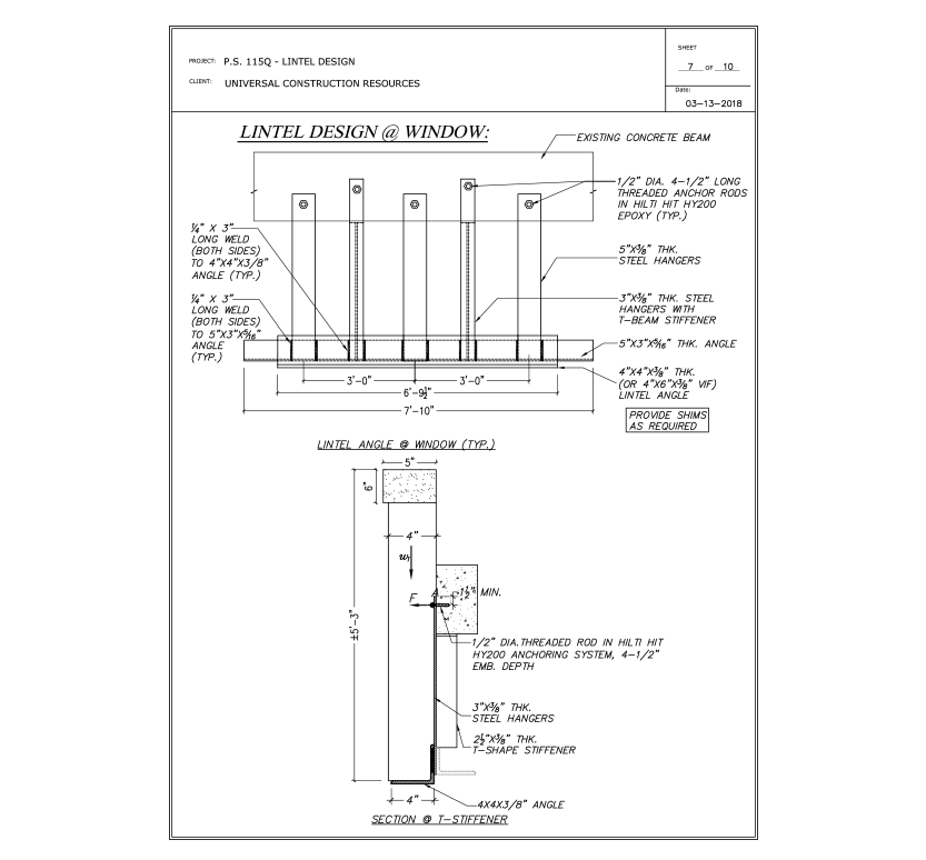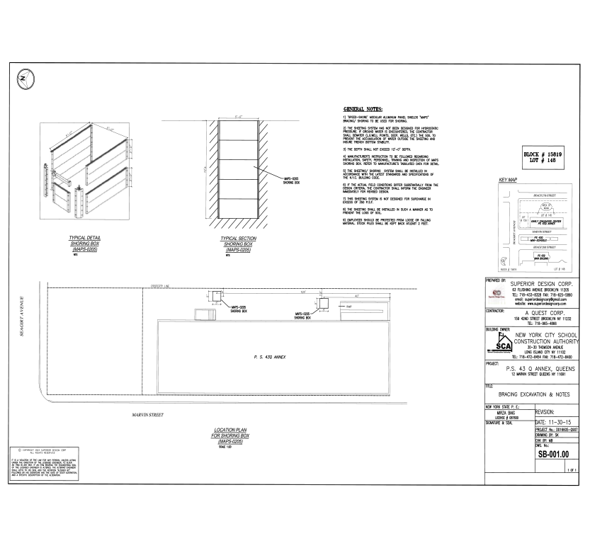 All major Structural Design work for Structural elements like beams, columns, footings, etc. are performed by the SCA’s Design Engineers, but still they require the Design of some structural elements like connection for beams & columns, shallow & deep excavation shoring, and sheeting which needs to be designed, signed and sealed by a NYC’s Professional Engineer.