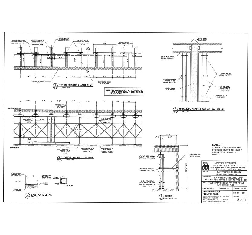 All major Structural Design work for Structural elements like beams, columns, footings, etc. are performed by the SCA’s Design Engineers, but still they require the Design of some structural elements like connection for beams & columns, shallow & deep excavation shoring, and sheeting which needs to be designed, signed and sealed by a NYC’s Professional Engineer.